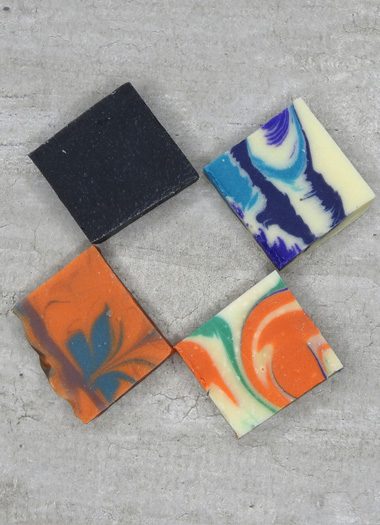 Un lot d'échantillons de 4 savons de la gamme Flow - La savonnerie afin que vous puissiez toucher, sentir et profiter de l'expérience que procure nos savons à froid.